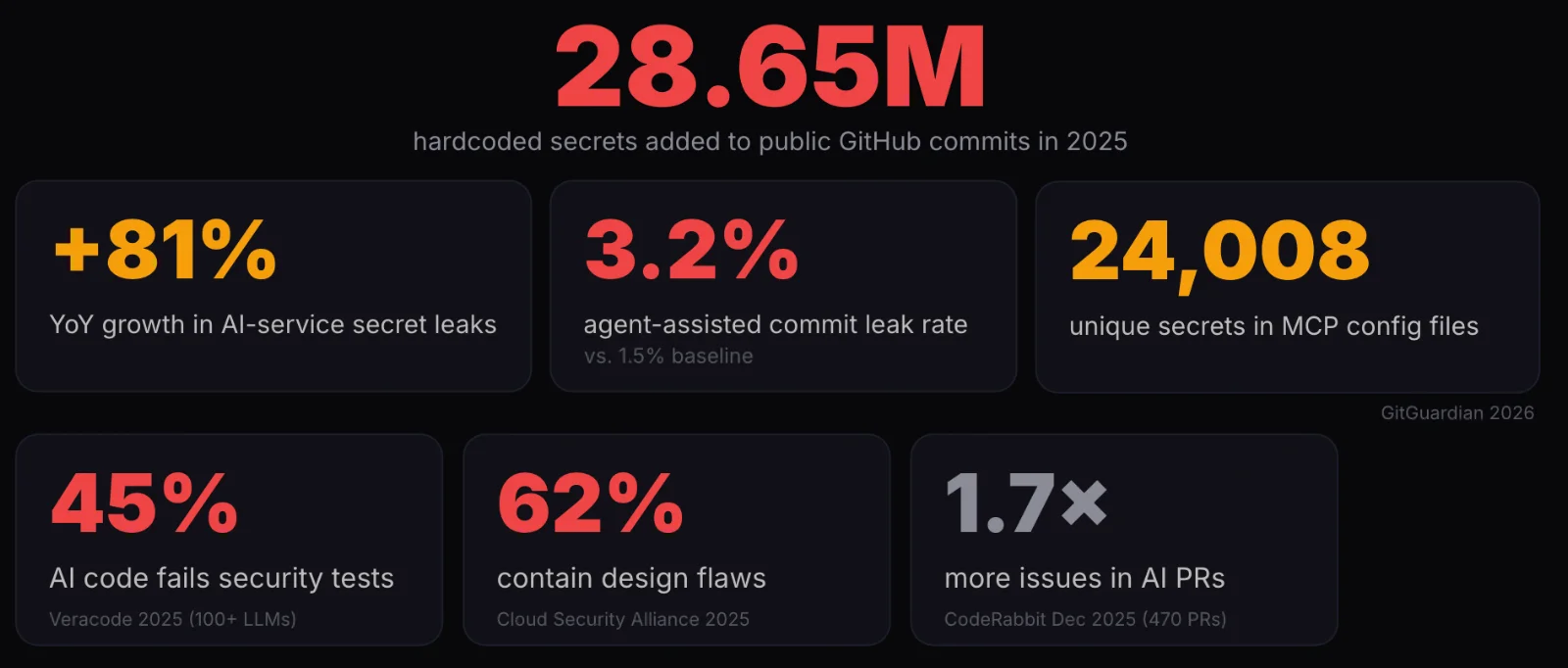 Coding agents are scaling software faster than security can scale review. According to the Cortex 2026 Benchmark report, while pull requests (PRs) per author increased 20% year over year, incidents per PR increased 23.5% and change failures increased 30% over the same period.