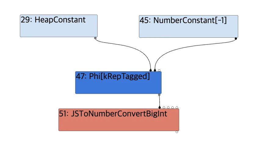 index += 1;The first line uses ternary operator, and it returns either ‘The Hole’ or -1. When leak_stuff() gets hot and triggers Just-in-time compilation, the ternary operator introduces a Phi node, followed by a JSToNumberConvertBigInt node.