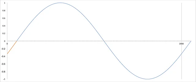 A cyclic prefix is a copy of the last few samples of the OFDM symbol inserted at the beginning of the OFDM symbol. This will make the OFDM symbol longer, which reduces bandwidth, but it also enables autocorrelation to find the beginning of the OFDM symbol and acts as a guard interval to prevent intersymbol interference. Autocorrelation ( wikipedia) is a simple technique whereby the signal is correlated ( wikipedia) with a delayed copy of itself and we look for a peak. In the case of a cyclic prefix, the delay is the length of the original OFDM symbol, 2048 samples.