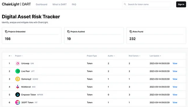 ChainLight는 웹3상에 산재하는 다양한 취약점과 위협으로부터 이용자 및 거래소, 프로젝트 빌더를 보호하는 통합 보안 플랫폼인 DART(Digital Asset Risk Tracker)를 런칭했습니다.
