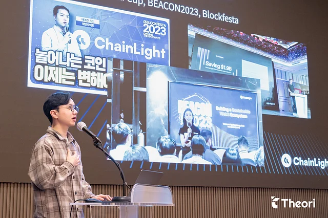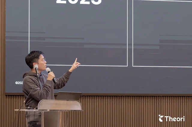 팀별 발표, 활동에 이어 대표님께서 마이크를 잡으셨습니다. 2022–2023년을 돌아보며 이제껏 티오리가 어떻게, 얼마나 성장했는지 공유해 주셨어요.