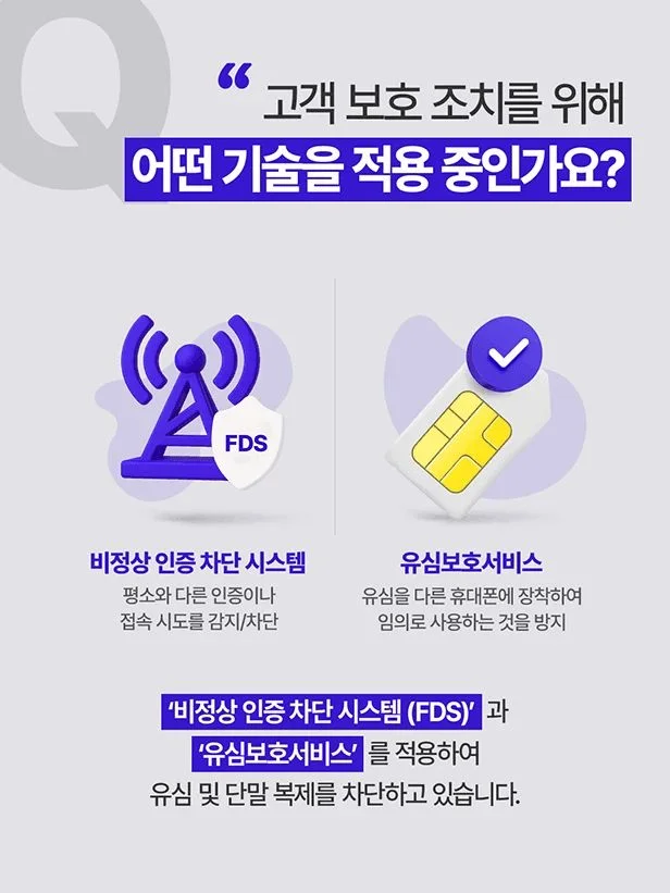 SKT ์ธก์ ์นจํด ์ฌ์ค์ ํ์ธํ ์ฆ์ CERT ๋์์ ๊ฐ์ํ๊ณ , ์ ์ฑ์ฝ๋ ์ ๊ฑฐ ๋ฐ ์์คํ ๊ฒฉ๋ฆฌ ์กฐ์น๋ฅผ ์ํํ์ต๋๋ค. ๋์์ ๊ณ ๊ฐ ์ ๋ณด ์ ์ถ ๋ฒ์๋ฅผ ํ์ ํ๊ณ , ์ ์ถ์ด ์์ฌ๋๋ ๊ณ์ ์ ๋ํ ๋ชจ๋ํฐ๋ง๊ณผ ๋น๋ฐ๋ฒํธ ์ด๊ธฐํ๋ฅผ ํฌํจํ ํ์ ์กฐ์น๋ฅผ ์งํ ์ค์ ๋๋ค.