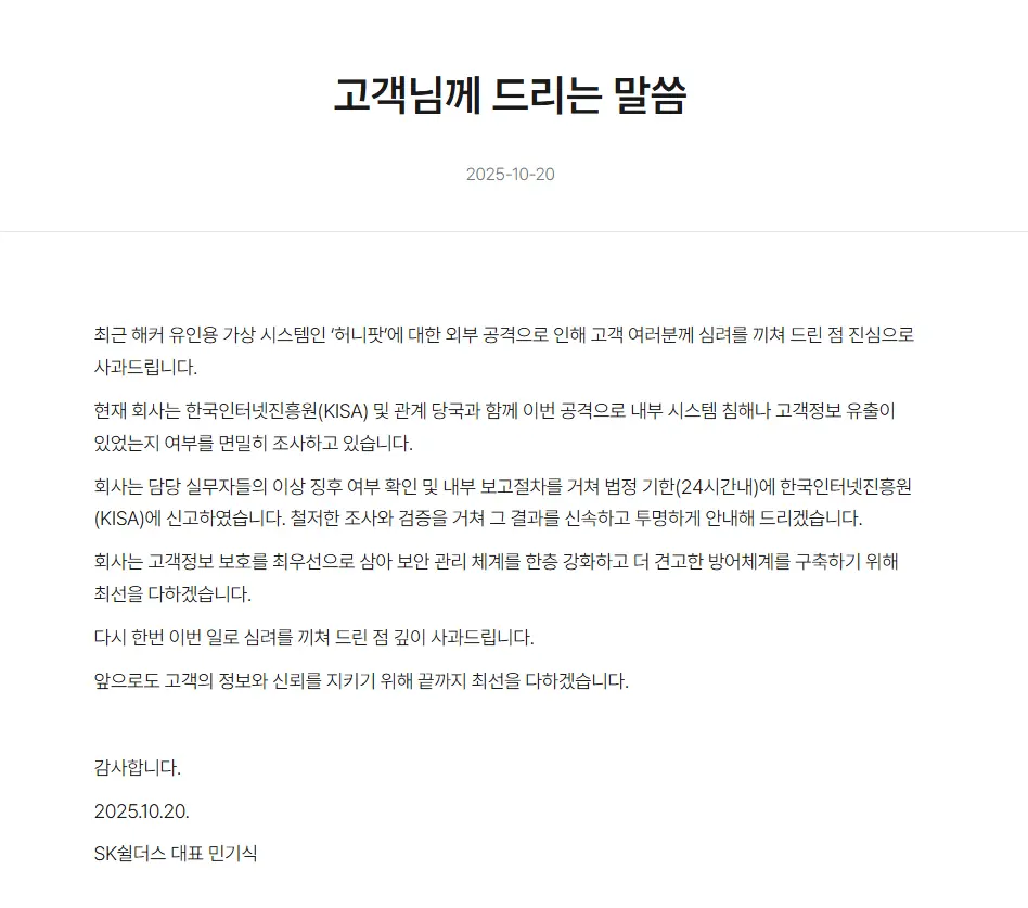 2025๋ 9์ 18์ผ, ๋กฏ๋ฐ์นด๋๋ ํดํน์ ์ํ ๋๊ท๋ชจ ๋ฐ์ดํฐ ์ ์ถ ์ฌ๊ณ ๋ฅผ ๊ณต์ ๋ฐํํ๋ฉฐ ๋ค์์ ํดํน ์ด์๋ก ํผ๋์ค๋ฌ์ด ์ฌํ ์ ๋ฐ์ ์ถฉ๊ฒฉ์ ๋ํ์ต๋๋ค. ์ ์ถ๋ ๋ฐ์ดํฐ์๋ ๊ณ ๊ฐ์ ๊ธฐ๋ณธ์ ์ธ ๊ฐ์ธ์ ๋ณด๋ฅผ ํฌํจํ์ฌ ์จ๋ผ์ธ ๊ฒฐ์ ์ ๋ณด, CI(์จ๋ผ์ธ์ ๊ณ ์ ์๋ณ๋ฒํธ), ๋น๋ฐ๋ฒํธ, ์นด๋ ๋ฒํธ, CVC ๋ฑ ์ ์ถ ์ 2์ฐจ ํผํด๋ฅผ ์ผ๊ธฐํ ์ ์๋ ๋ฏผ๊ฐํ ์ ๋ณด๊ฐ ๋ค๋ ํฌํจ๋์ด ์์์ต๋๋ค.