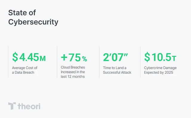 날로 증가하는 사이버 위협, 그 심각성은 어느 정도일까요? 최근 조사에 따르면 데이터 침해 사고의 평균 비용은 한 건당 445만 달러에 달합니다. 특히 클라우드 환경에서 발생하는 침해 사고는 지난 1년 동안 75%가 증가했으며, 공격자가 성공적인 공격을 수행하는 데 걸리는 시간이 적게는 2분 7초에 불과한데요. 이러한 추세라면 2025년까지 사이버 범죄로 인한 피해 규모는 10조 5천억 달러에 이를 것으로 예상된다고 합니다.