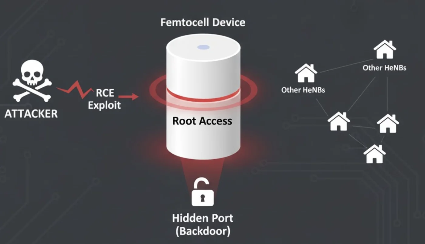참고 사례: Nico Golde et al.의 연구에서는 상용 펨토셀 장비에서 루트 권한을 획득해 음성/SMS/데이터를 가로채거나 능동적 트래픽 조작을 시연한 사례가 보고되어 있습니다. 이러한 공격은 장비 내부의 소프트웨어, 커널 수준 후킹이나 패킷 경로 조작을 통해 구현될 수 있습니다.