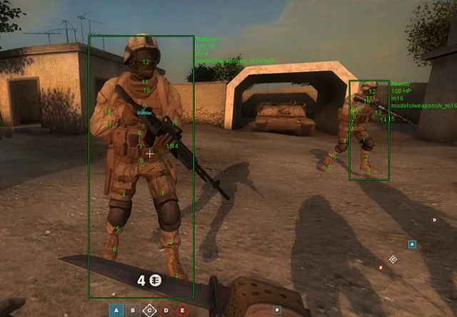 게임 내부적으로 뼈를 관리하는 과정에서 고유의 숫자가 붙는데, 이 숫자를 뼈의 위치에 그려주는 것이 Bone Index Logger다. 핵 개발자는 이것을 보고 각 뼈가 어느 부위에 있는지 식별할 수 있다. 이렇게 얻은 정보를 통해 각 뼈를 올바르게 이어주면 아래와 같이 Bone ESP가 완성된다.