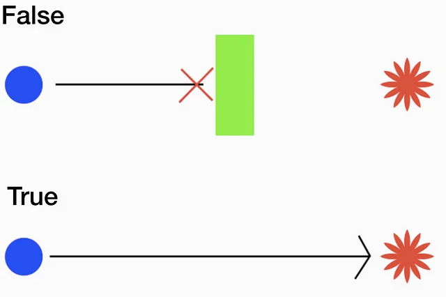 예를 들면 아래 그림처럼 충돌이 발생하면 1, 충돌이 발생하지 않으면 0을 리턴하는 충돌 검사 함수가 있다.