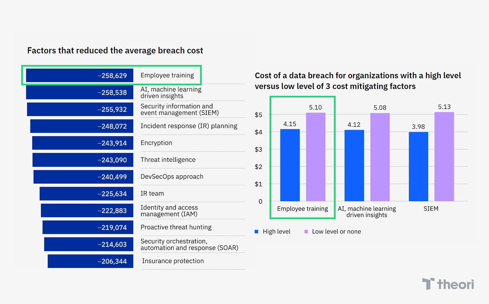 실제로 여러 연구 결과는 사내 임직원 대상의 보안 교육이 사이버 사고의 발생률과 대응 비용을 효과적으로 낮출 수 있음을 보여줍니다. IBM의 2024년 데이터 침해 비용 보고서에 따르면, 임직원 교육(Employee Training)은 평균 데이터 침해 비용을 약 26만 달러 절감하는 데 기여한 가장 효과적인 요인으로 나타났습니다. 또한, 보안 교육 수준이 높은 조직과 낮은 조직 간에는 평균 약 95만 달러의 침해 비용 차이가 발생한다고 합니다, 이는 사고 발생 후 복구에 드는 막대한 비용과 기업 평판 등을 고려할 때, 선제적인 보안 인재 확보와 역량 강화가 비용 대비 가장 높은 효과를 낼 수 있는 전략적 선택임을 보여줍니다.