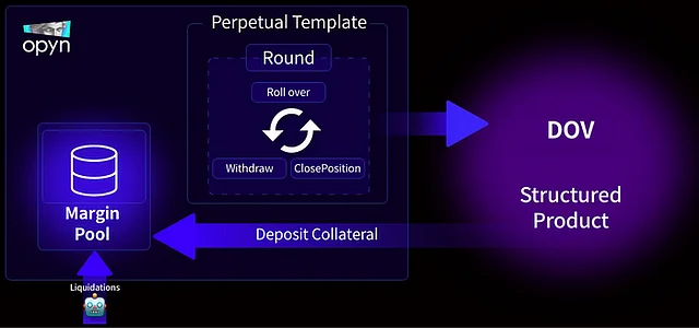 Opyn의 사용자는 자체적으로 독립적인 볼트를 운영할 수 있는데, 이를 디파이 옵션 볼트(Defi Option Vault, DOV)라고 합니다. DOV는 주로 구조화 상품 거래 모델을 사용하는 다른 옵션 거래소에서 활용되는데, 참가자들이 매 라운드마다 oToken을 예치하고 그에 대한 보상을 받는 시스템입니다. DOV의 도입은 여러가지 장점을 갖습니다. 옵션을 지정가에 행사할 수 있어 가스 수수료를 절감할 수 있으며, 특정 구간에서 옵션을 묶음 처리할 수 있도록 구현해 실시간성의 향상을 도모했습니다. 이에 더해 롤오버(roll-over) 메커니즘을 통해 라운드마다 포지션을 재구성함으로써 거래의 유연성을 향상시켰습니다.