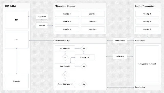 하기의 이어지는 섹션에서는 ERC-4337을 구성하는 각 요소를 소개합니다.
